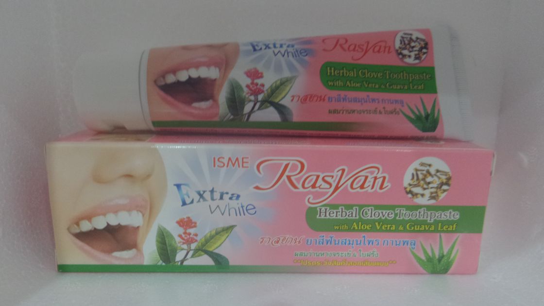 Самая популярная в Таиланде розовая зубная паста от тайских производителей обладает приятным специфическим запахом и содержит в своем составе уникальные компоненты, легко устраняющие зубной налет, а также кофейные, чайные пятна и пятна после сигарет.