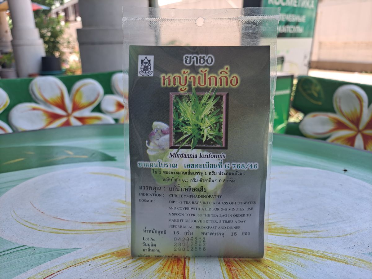 Травянистое растение Murdannia Loriformis, или по-тайский Йа Пак Кинг, – одно из тех лекарственных растений Азии, которые уже много веков используют в традиционных восточных медицинах, в т.ч. в тайской. Убивает раковые клетки при онкологических заболеваниях печени, крови, ЖКТ, мочеполовой системы, щитовидной железы. Повышает иммунитет, балансирует кровяное давление, стимулирует пищеварение. Очень эффективно очищает лимфу, печень, почки и всю мочевыводящую систему.