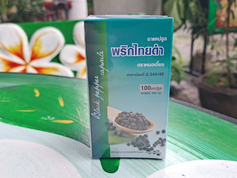 Капсулы черного перца Black Pepper Capsule от тайского бренда Kongka Herb предназначены для выведения шлаков из организма о очищения крови, для снижения веса и нормализации давления, показаны при метеоризме.
