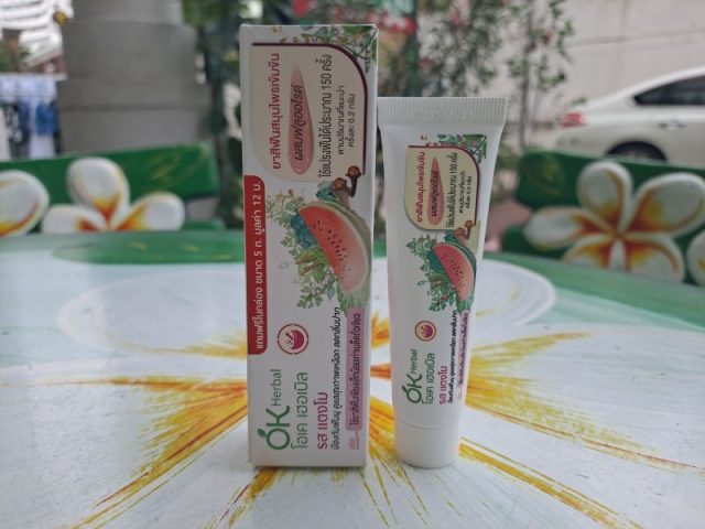 Также после использования травяной зубной пасты OK Herbal Watermelon долгое время ощущается прохладный и освежающий аромат арбуза.