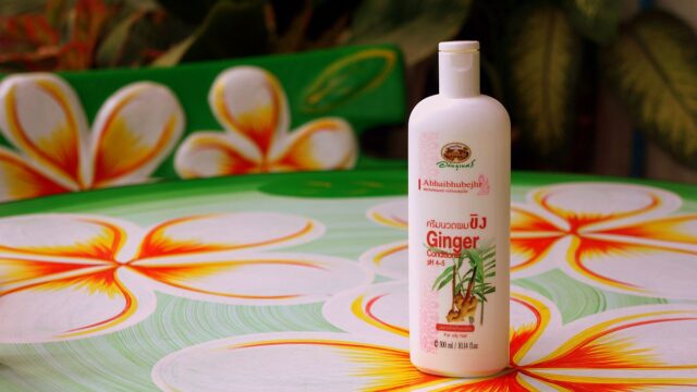 Кондиционер любимого миллионами тайцев и иностранцев бренда натуральной косметики Abhaibhubejr содержит масло корня имбиря, которое благотворно влияет на кожу головы, в результате состояние самих волос заметно улучшается.