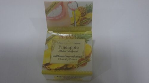 Зубная паста производства Prai Thai Herbs с экстрактом ананаса обладает полезными природными компонентами, благодаря которым способствует укреплению зубной эмали, восстанавливает белизну, устраняет неприятные запахи и улучшает упругость десен.
