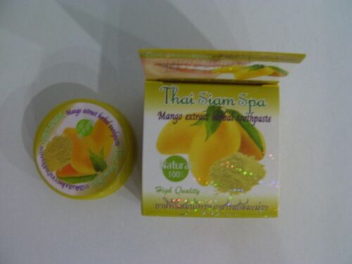 Круглая зубная паста от тайских производителей с экстрактом манго легко очищает зубной налет, препятствует появлению зубного камня и развитию заболеваний ротовой полости. Благодаря наличию в составе пасты специальных активных компонентов дыхание вновь становится свежим, происходит укрепление зубной эмали и устраняются бактерии.