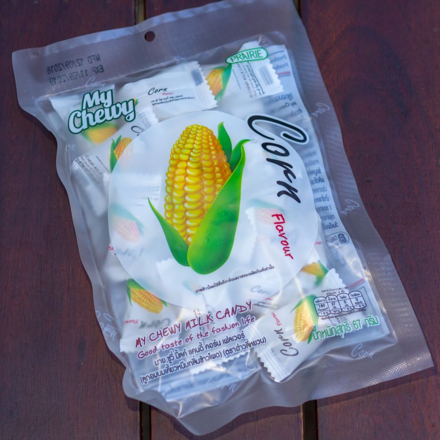 Жевательные конфетки с кукурузной мукой обладают несколько экзотическим нежным вкусом. Под тонкой ирискообразной оболочкой скрывается еще более мягкий кремовый слой – это конфетки “с сюрпризом”. Неповторимый приятный вкус нравится и искушенным любителям тайской кухни, и новичкам!