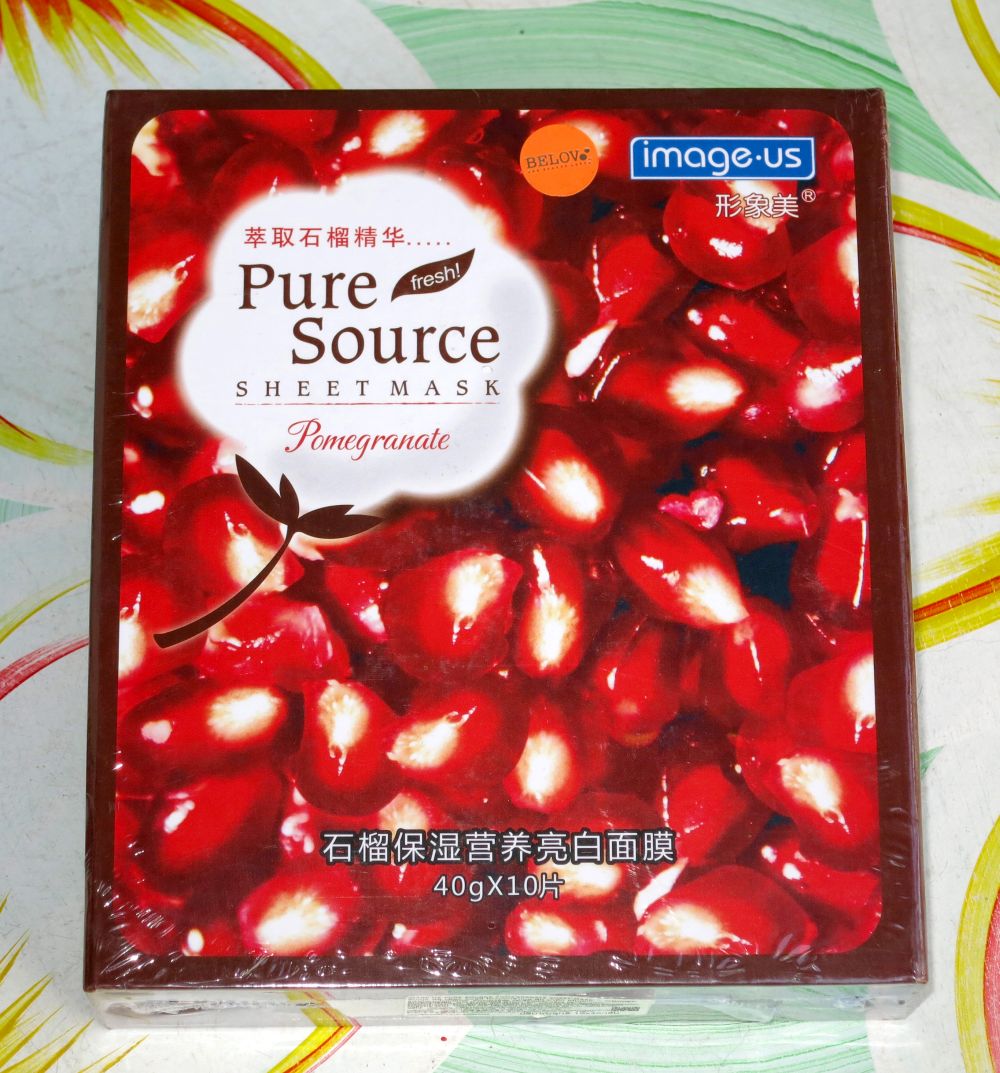 Удобная тканевая маска с гранатом против преждевременного старения кожи.