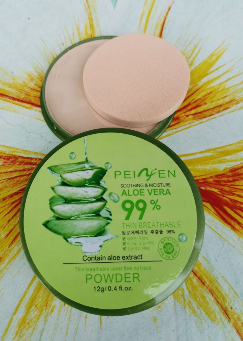 Компактная пудра Aloe vera 99% очень нежная и лёгкая, равномерно наносится на всё лицо. За счет своей полупрозрачности места темного и светлого цвета она сливает в единое целое, в результате чего кожа имеет ровный оттенок. Лицо выглядит естественно и очень красиво.
