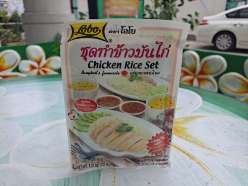 Набор LOBO содержит смесь приправ для риса, соуса для макания и супового порошка, позволяющие легко приготовить кхао ман гай.