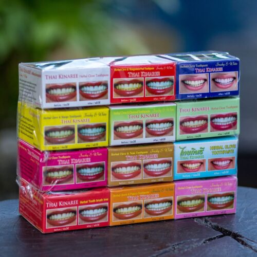 Помимо гвоздичного масла – обязательного элемента каждого виды зубных паст Thai Kinaree – в составах также присутствуют борнеол и мятное масло.