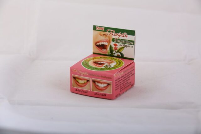 Розовая круглая зубная паста RASYAN с экстрактом гвоздики обладает высокоэффективными природными компонентами, благодаря которым легко справляется с зубным налетом и остатками от чая, кофе и сигарет, преодолевает развитие бактерий и устраняет заболевания ротовой полости, освежает дыхание и укрепляет зубную эмаль.