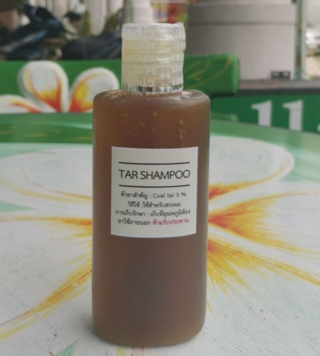 Шампунь «Тар» был разработан тайскими медиками специально от проблемы псориаза в волосистой части головы. В его составе содержится 5% Coal Tar – вещество органического происхождения – каменноугольный деготь.