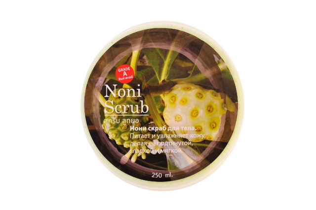 Отличный ароматный скраб, изготовленный из уникального тайского цветка нони освежает и отшелушивает кожу тела, удаляя мертвые клетки и восстанавливая поврежденные ткани.