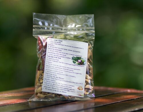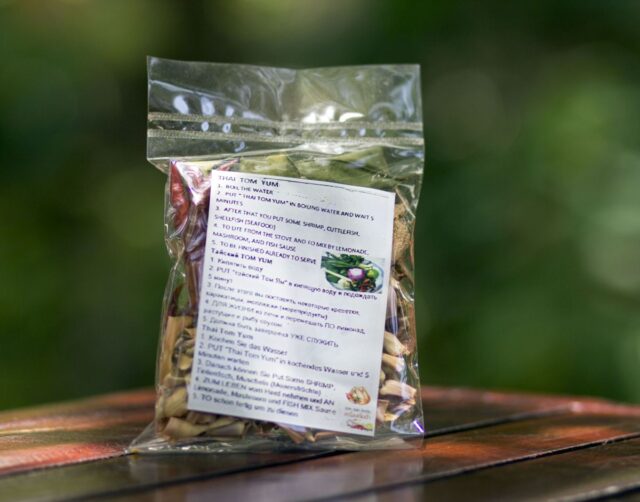 Мы уважаем Аюрведу и потому предлагаем сушеные специи для Том Яма – набор из корней имбиря и галангала, перчика чили, листьев лемонграсса и каффирского лайма.