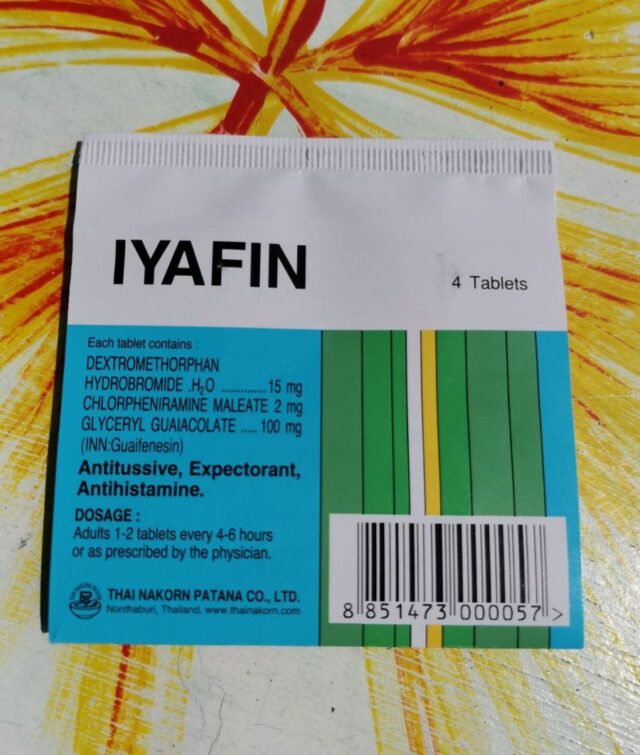 Таблетки Iyafin – очень популярное средство в Таиланде, снимающие признаки простуды. Они снимают заложенность носа, устраняют першение в горле и отечность глаз. Кроме этого, борются с кашлем и чиханием.