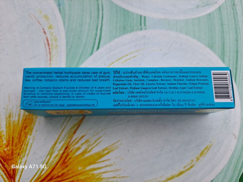 Концентрированная зубная паста Tepthai изготовлена из натуральных ингредиентов, таких как борнеол, камфора, кора стреблуса, гвоздичное масло, мята и т. д. Они обеспечивают гигиену полости рта, защищают зубы и десны, уменьшают зубной налет, пятна от чая, кофе, табака, избавляют от неприятного запаха изо рта.
