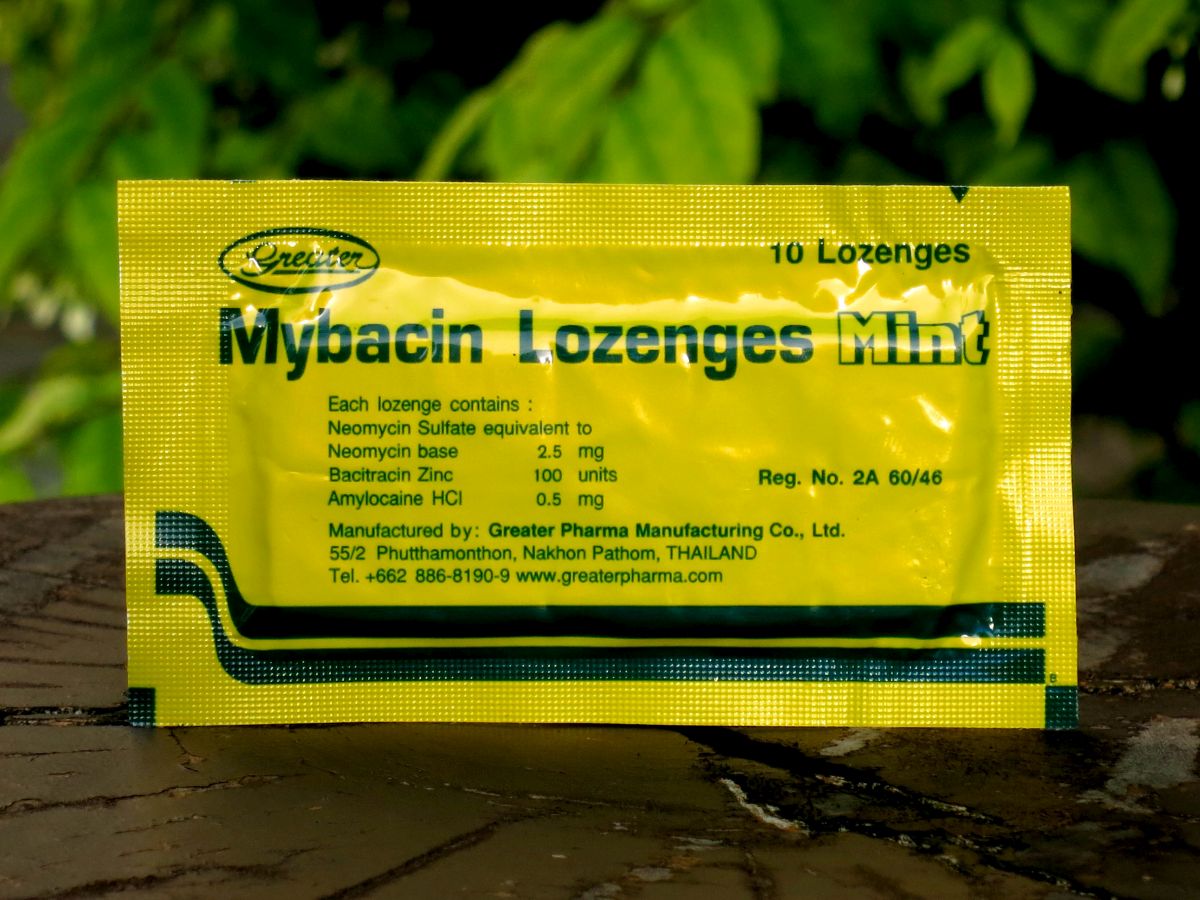 Mybacin Lozenges Mint – лечебные мятные пастилки, которые быстро и эффективно снимают боль в горле, заживляют мелкие язвы в ротовой полости и способствуют скорейшему выздоровлению при инфекциях ротовой полости и верхних дыхательных путей – ангины, гингивиты и т.п.