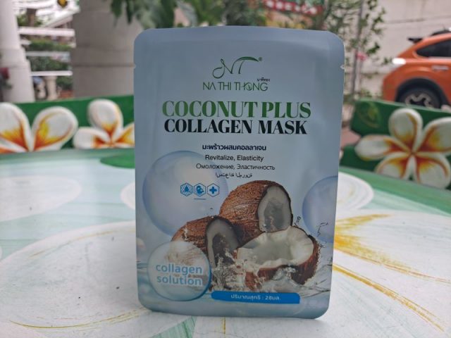 Тканевая маска с экстрактом кокоса и коллагеном Collagen and Coconut Face Mask Na Thi Thong обеспечивает глубокое увлажнение любого типа кожи, стимулирует кровообращение, восстанавливает упругость, успокаивает раздражение. Благодаря активным компонентам маска насыщает эпидермис витаминами, препятствует шелушению и снимает ощущение стянутости.