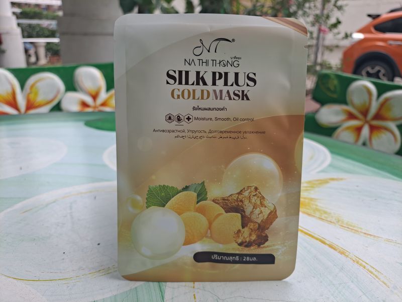 Тканевая маска с шелком и золотом Silk plus gold mask Na Thi Thong повышает упругость кожи, укрепляет тургор, обладает омолаживающим и подтягивающим действием.
