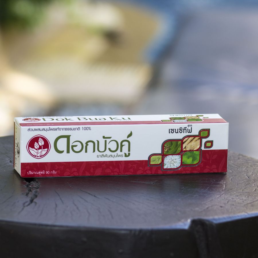 Специально разработанная для качественного ухода за зубами с чувствительной эмалью, зубная паста Twin Lotus Dok Bua Ku Sensitive содержит большей частью из травяных компонентов. Их наличие объясняет необычный приятный запах лечебных трав.