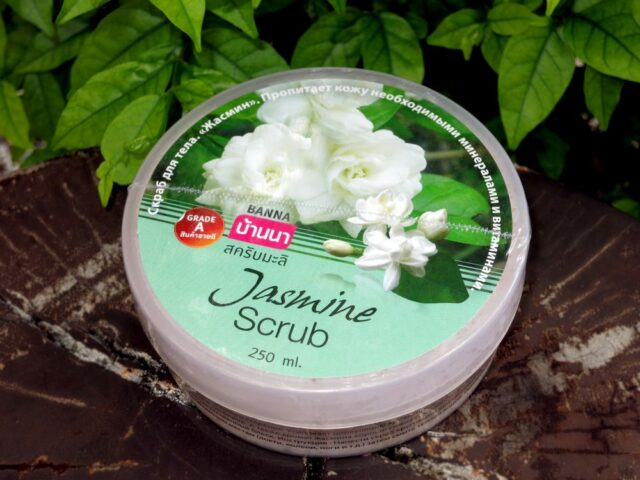 Этот скраб для тела таиландской марки Banna содержит ароматное масло жасмина, которое в косметологии считается одним из самых ценных и универсальных. Оно помогает поддерживать молодость кожи, способно проникать в глубокие слои кожи и насыщать ее влагой, тем самым предотвращая сухость и преждевременное старение. В то же время при жирной коже жасминовое масло помогает отрегулировать работу сальных желез и тем самым предотвращает появление угрей и черных точек.