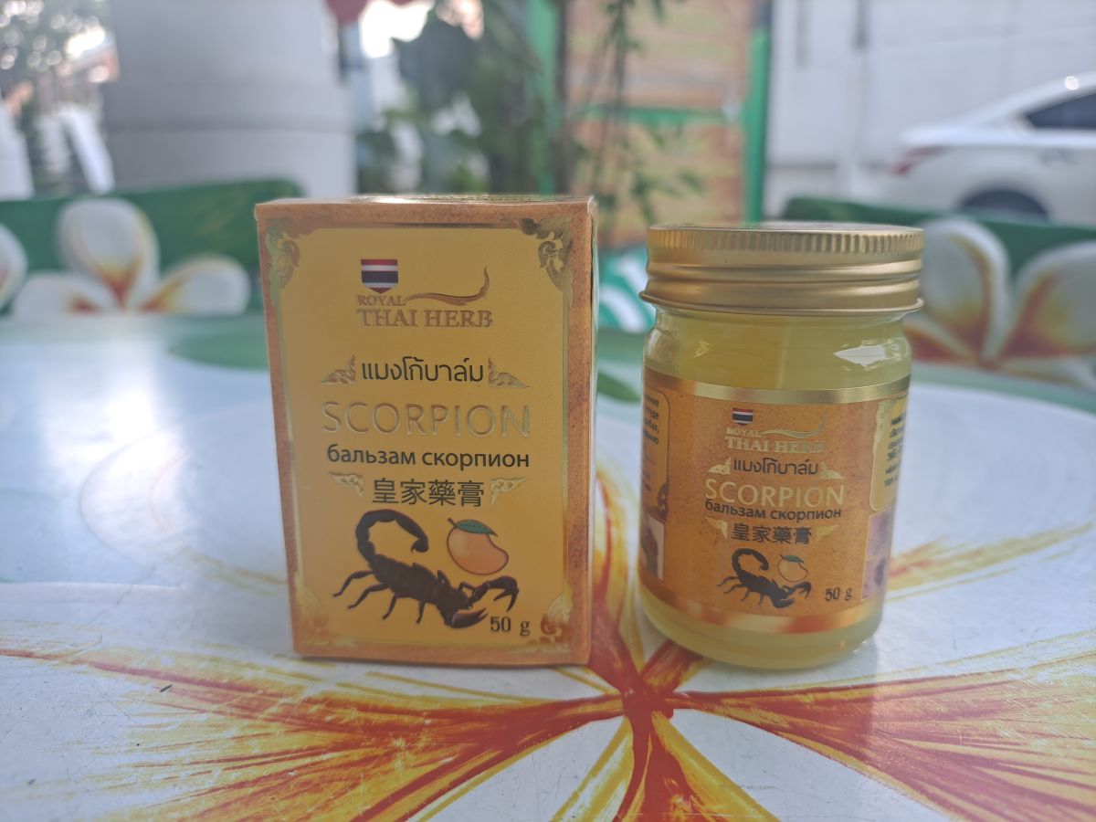 Традиционный тайский бальзам с ядом скорпиона создан для лечения артрита, артроза, полиартрита. Яд скорпиона в составе бальзама способствует проникновению лечебных компонентов мази в ткани организма, усиливает их воздействие.